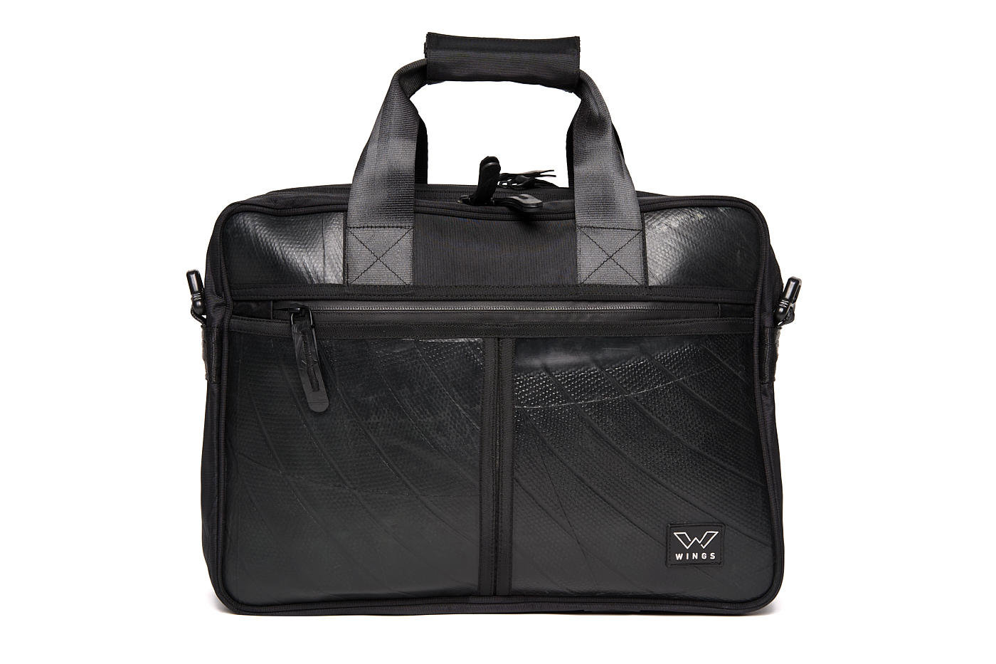 The Elegant Eagle is a handmade laptop bag from upcycled truck inner tubes. It has waterproof zippers and a reinforced bottom. You can safely transport all your electronics, such as a 15” laptop or tablet, and in the many zippered compartments you can store papers, pens, staplers, perforators and other office supplies. The detachable and adjustable shoulder strap is made from an upcycled car belt.